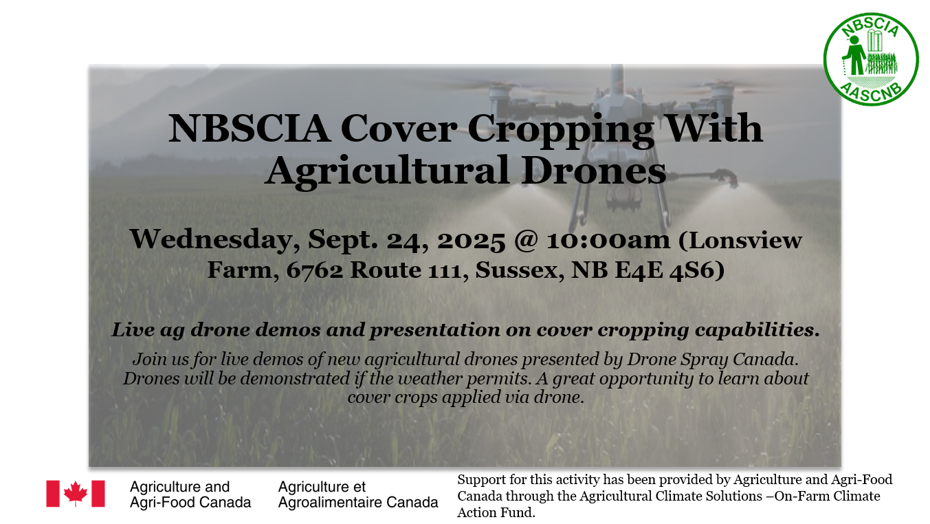 Lonsview Farm 6762 Route 111, SussexLive ag drone demos and presentation on cover cropping capabilities. Join us for live demos of new agricultural drones presented by Drone Spray Canada. Drones will be demonstrated if the weather permits. A great opportunity to learn about cover crops applied via drone.