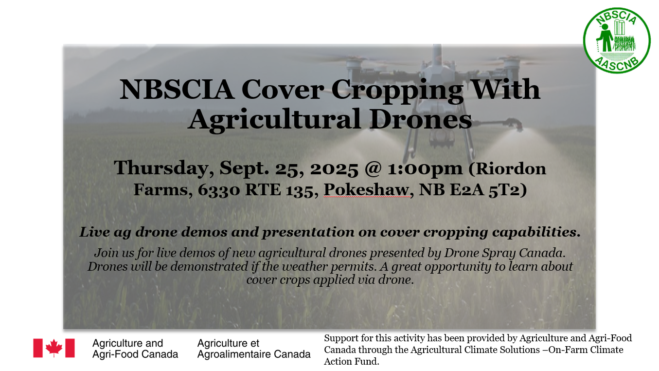 Coburn Farms 107 Route 616, Keswick RidgeLive ag drone demos and presentation on cover cropping capabilities. Join us for live demos of new agricultural drones presented by Drone Spray Canada. Drones will be demonstrated if the weather permits. A great opportunity to learn about cover crops applied via drone. Register Here